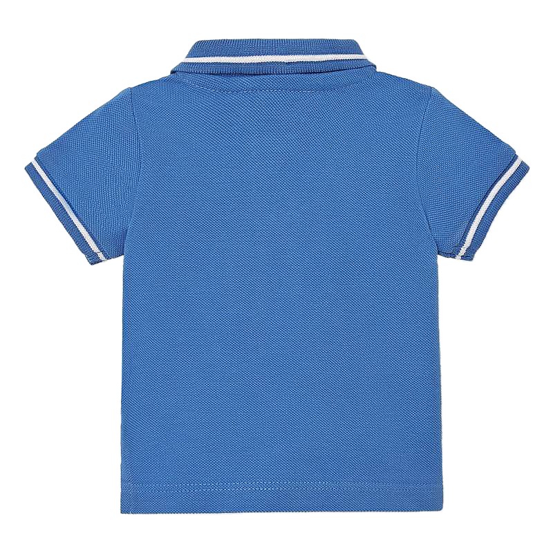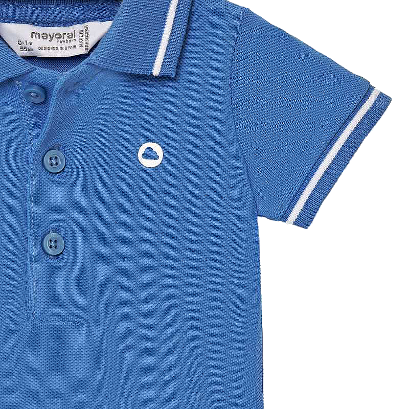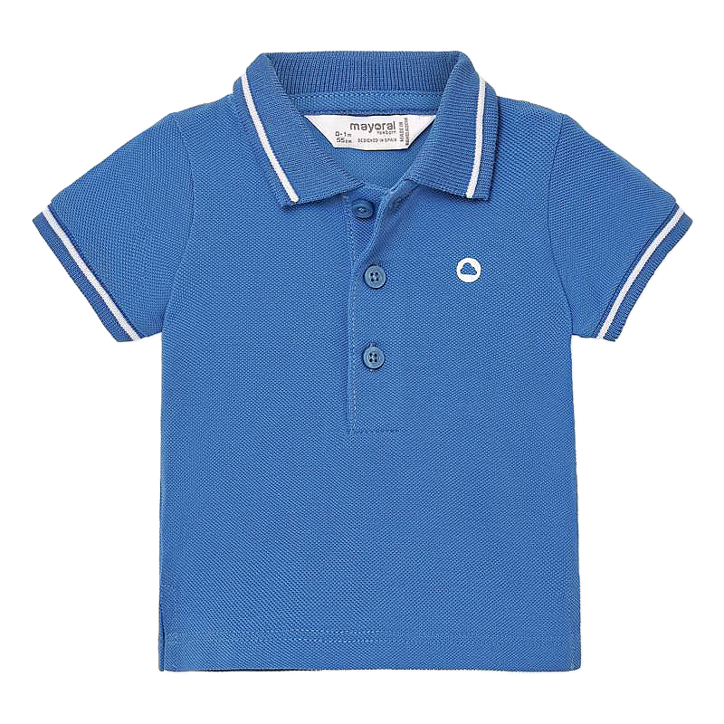 Tricou polo clasic cu maneca scurta - Albastru/AlbTricoul cu maneca scurta clasic, tip Polo cu guler si deschidere cu 3 nasturi in fata.Material moale din bumbac elastic. Gulerul este albastru cu dunga subtire alba.Model cu broderie mica pe partea stanga - norisor.